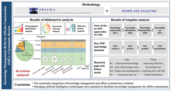 (1) What are the state-of-the-art approaches of knowledge management for offsite construction? (2) What are the key knowledge domains that need to be managed for offsite projects? (3) What are the research gaps and opportunities of knowledge management for OSC?